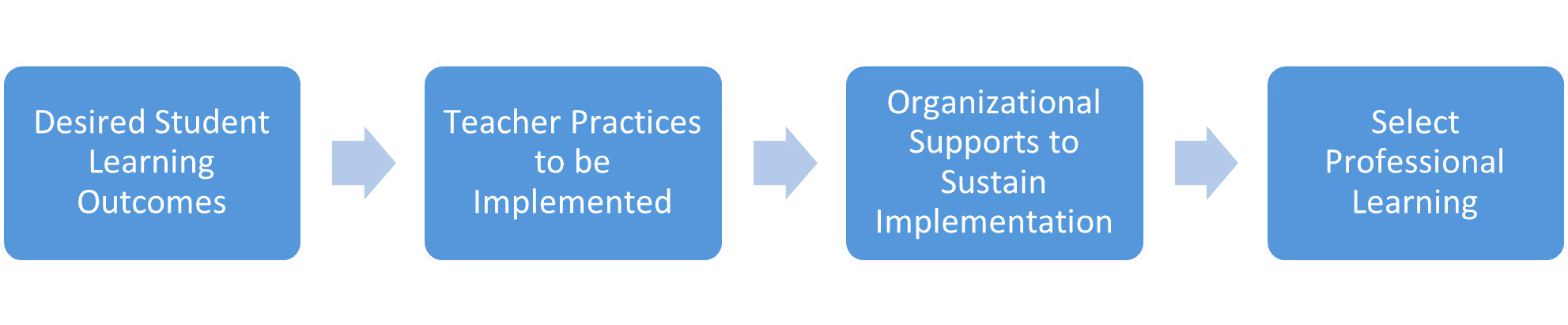 While there are a multitude of resources, it is important to take the time to select the “right” learning opportunity for staff. We know that educators’ time is limited, so we want to make sure professional learning experiences are effective. To do this, engage in backward planning. Just like new educators are taught when they are planning lessons, begin with the end in mind. So, think: what specific student learning outcomes are we trying to accomplish, and then what specific teacher practices will get us there?